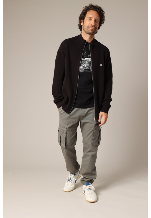 Confectionné dans une maille fine et douce, il offre un confort optimal au quotidien. Ce modèle à col montant est muni d'une fermeture zippée intégrale sur le devant, apportant à la fois praticité et modernité.