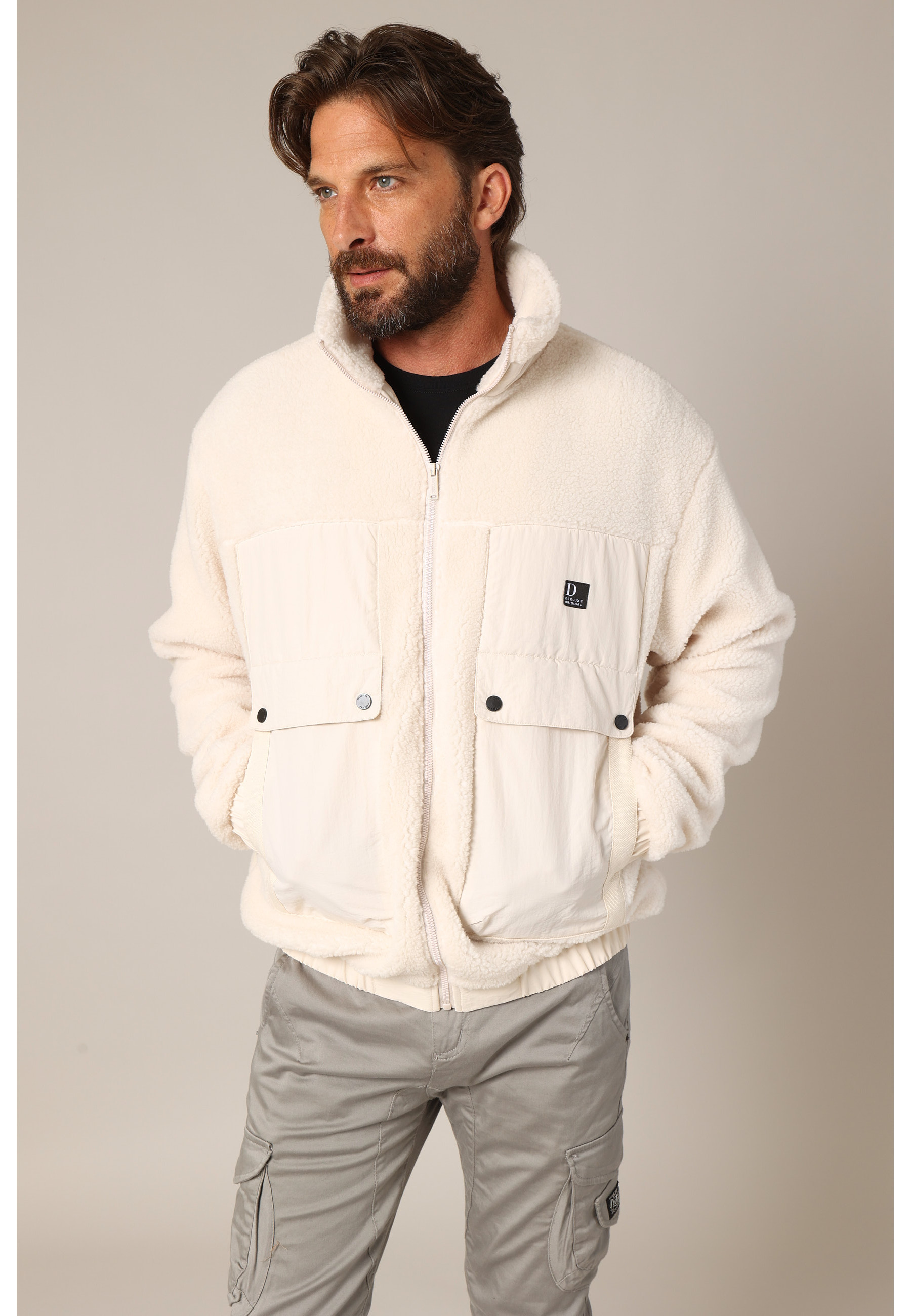 Son design moderne est rehaussé par deux grandes poches plaquées contrastées à rabat pressionné sur la poitrine, et une fermeture zippée sur toute la hauteur. Le col montant ajoute une protection supplémentaire contre le vent.