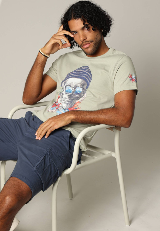 Le modèle NAUTICA est un t-shirt à manches courtes, parfait pour la saison printemps-été. Confectionné en jersey de coton 100%, ce t-shirt offre une sensation de douceur et de légèreté tout en restant durable. Sa coupe standard assure un confort optimal, tandis que sa finition biowash ajoute une touche de qualité au tissu. Le grand imprimé marin sur le devant confère une allure audacieuse et estivale, idéale pour un look décontracté. Disponible en trois coloris, il s’associe aisément avec un short ou un pantalon en toile pour un style estival affirmé.