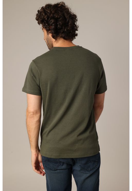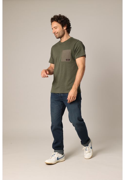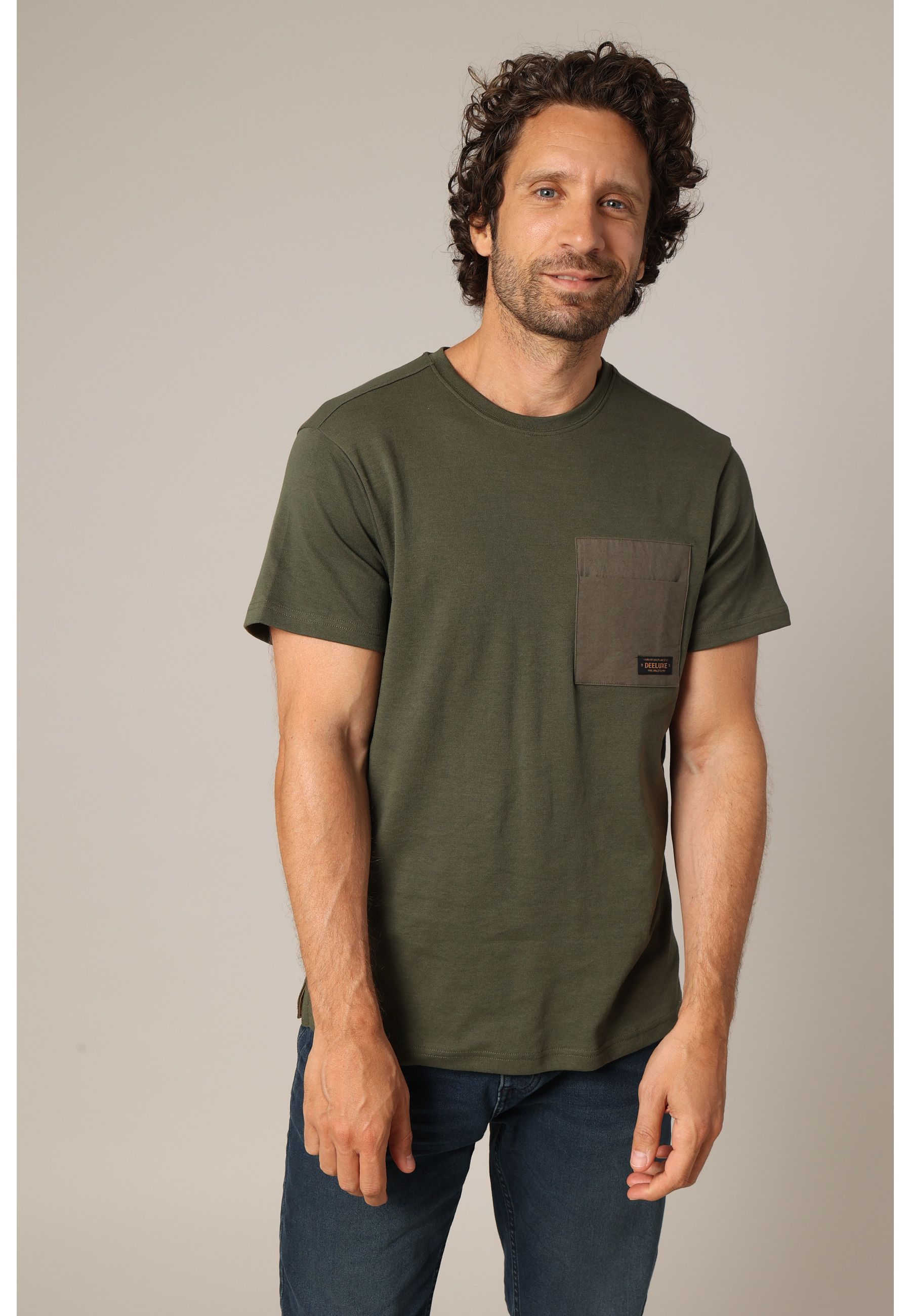 Un empiècement contrasté sur la poche poitrine apporte une touche urbaine et moderne, souligné par une étiquette siglée.