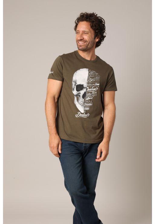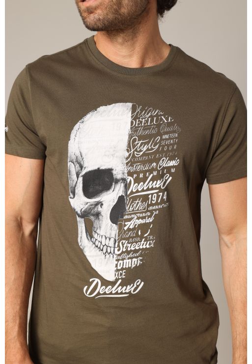 Ce t-shirt VEGAS pour homme associe l'esprit streetwear à une touche artistique percutante. Sur le devant, une grande illustration mi-crâne mi-typographie capte immédiatement l’attention, jouant sur les contrastes entre les formes graphiques et les mots enchevêtrés. Le visuel en noir et blanc, souligné par la signature "Deeluxe", apporte une identité forte à cette pièce. Confectionné en coton doux, il offre un confort optimal tout au long de la journée. Sa coupe classique à col rond et manches courtes s’adapte à tous les styles, du jean brut au pantalon cargo. Disponible en plusieurs déclinaisons de coloris, ce modèle revisite les codes du t-shirt imprimé avec un twist urbain assumé.