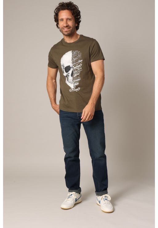 T-shirt 100 % coton avec imprimé tête de mort et typographie contrastée