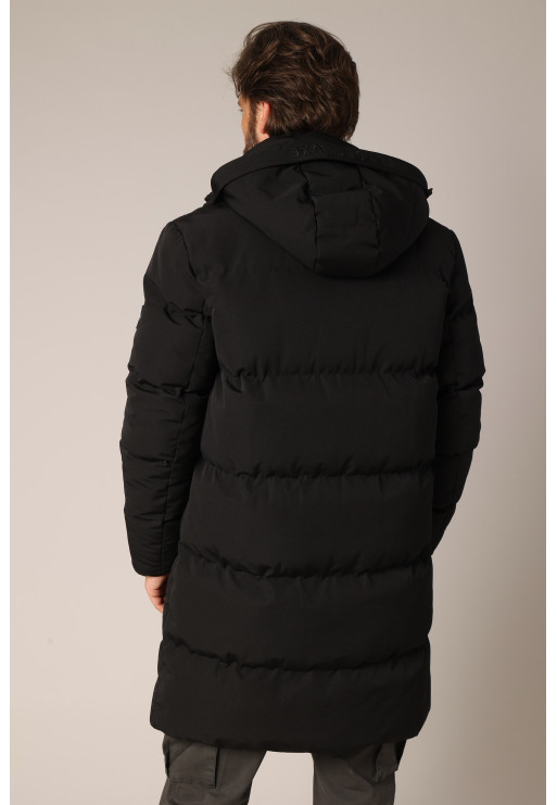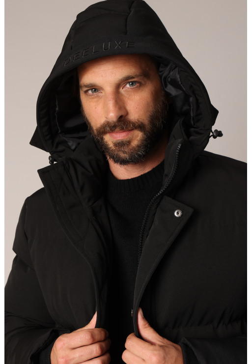 Ce modèle matelassé se distingue par sa coupe longue protectrice, ses larges surpiqûres horizontales et son allure épurée. Sa capuche intégrée et ajustable, ornée de l’inscription ton sur ton DEELUXE, apporte une touche contemporaine tout en garantissant une isolation optimale contre le froid et le vent.